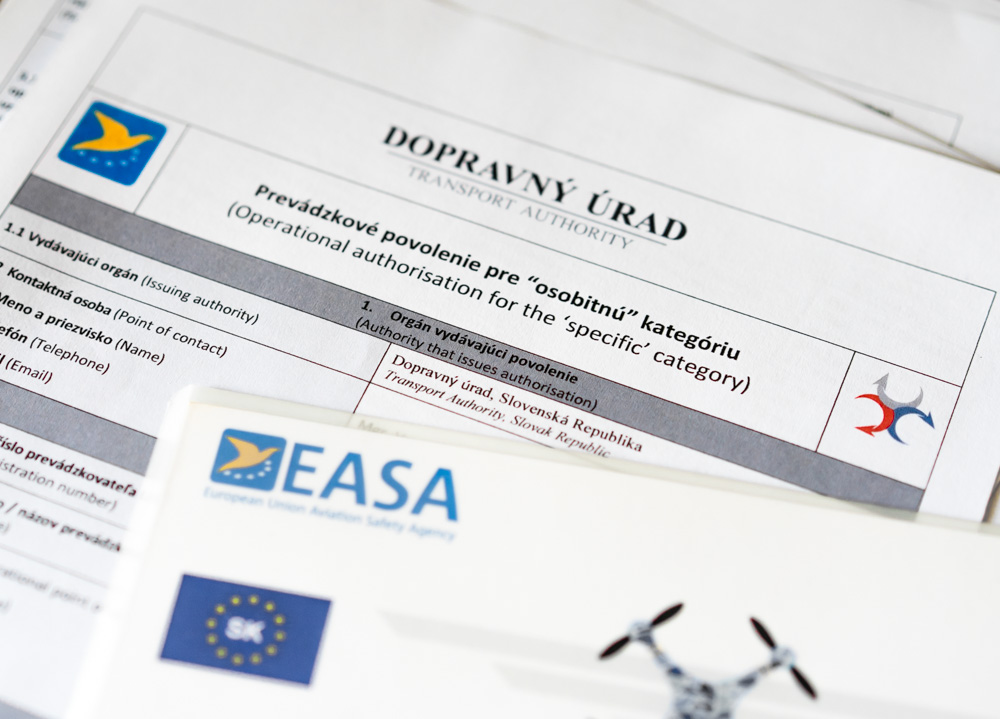 Sme držiteľmi prevádzkového povolenia v osobitej kategórii "SPECIFIC" na lietanie s dronmi spôsobilými lietať bez pilota, v súlade s Nariadením (EÚ) 2019/947.